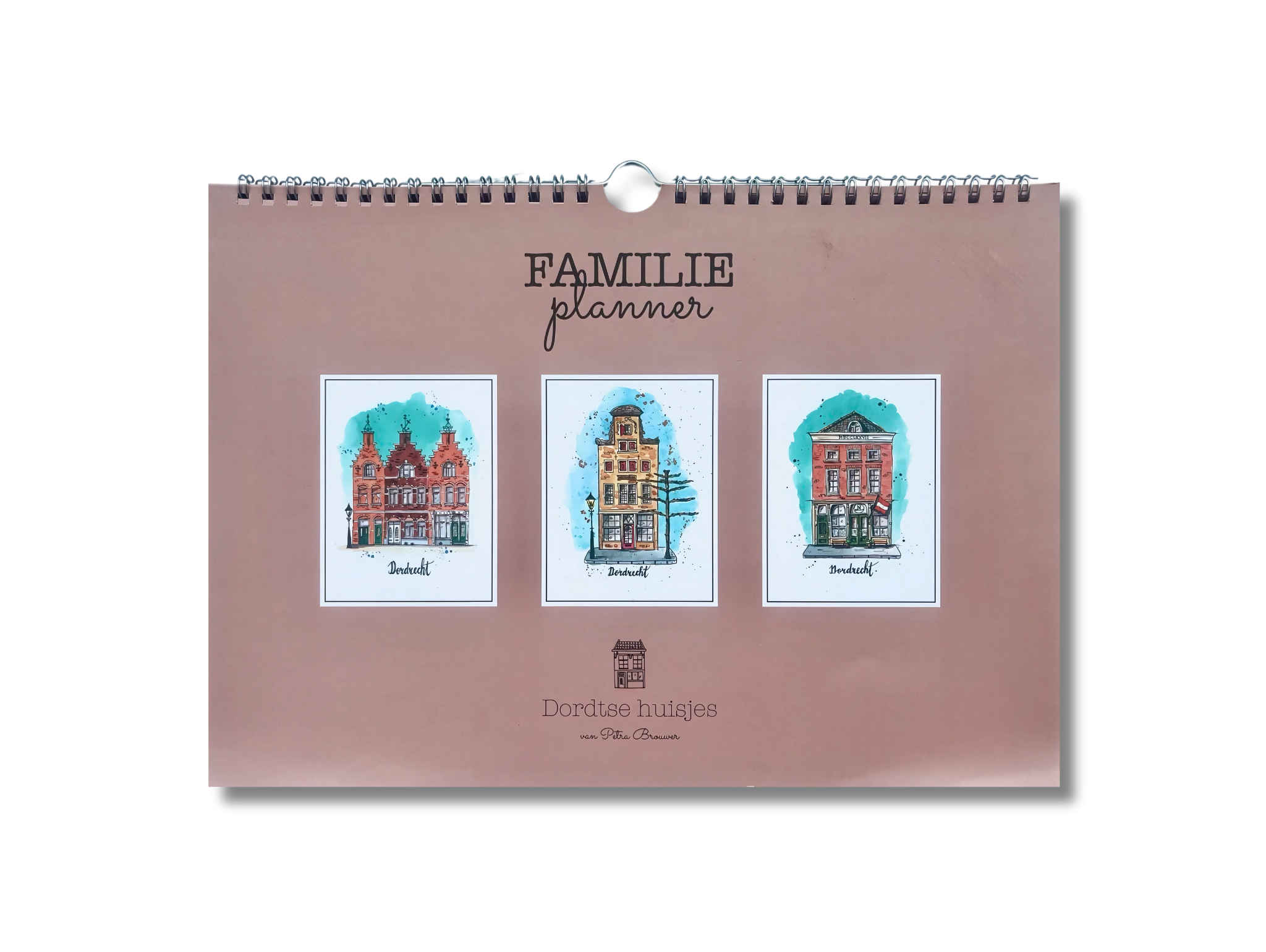 Dordtse huisjes familieplanner: een weekplanner voor het hele gezin. Om de vier weken staat er een ander huisje op, zo blijft het een feestje om in de planner te werken. Bovenaan is ruimte om vijf namen in te vullen. Deze familieplanner is zonder datum dus je kan ermee starten wanneer je wilt. Er is een lijntje onder elke dag zodat je wel zelf de datum kan invullen. Aan de zijkant staat een ‘niet vergeten’ lijstje. De Dordtse huisjes familieplanner bevat 52 weken zodat je weer een heel jaar vooruit kan! De ringband met haakje zorgt ervoor dat je het makkelijk op kan hangen.