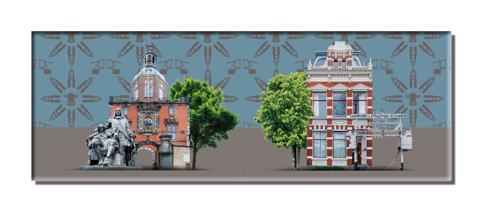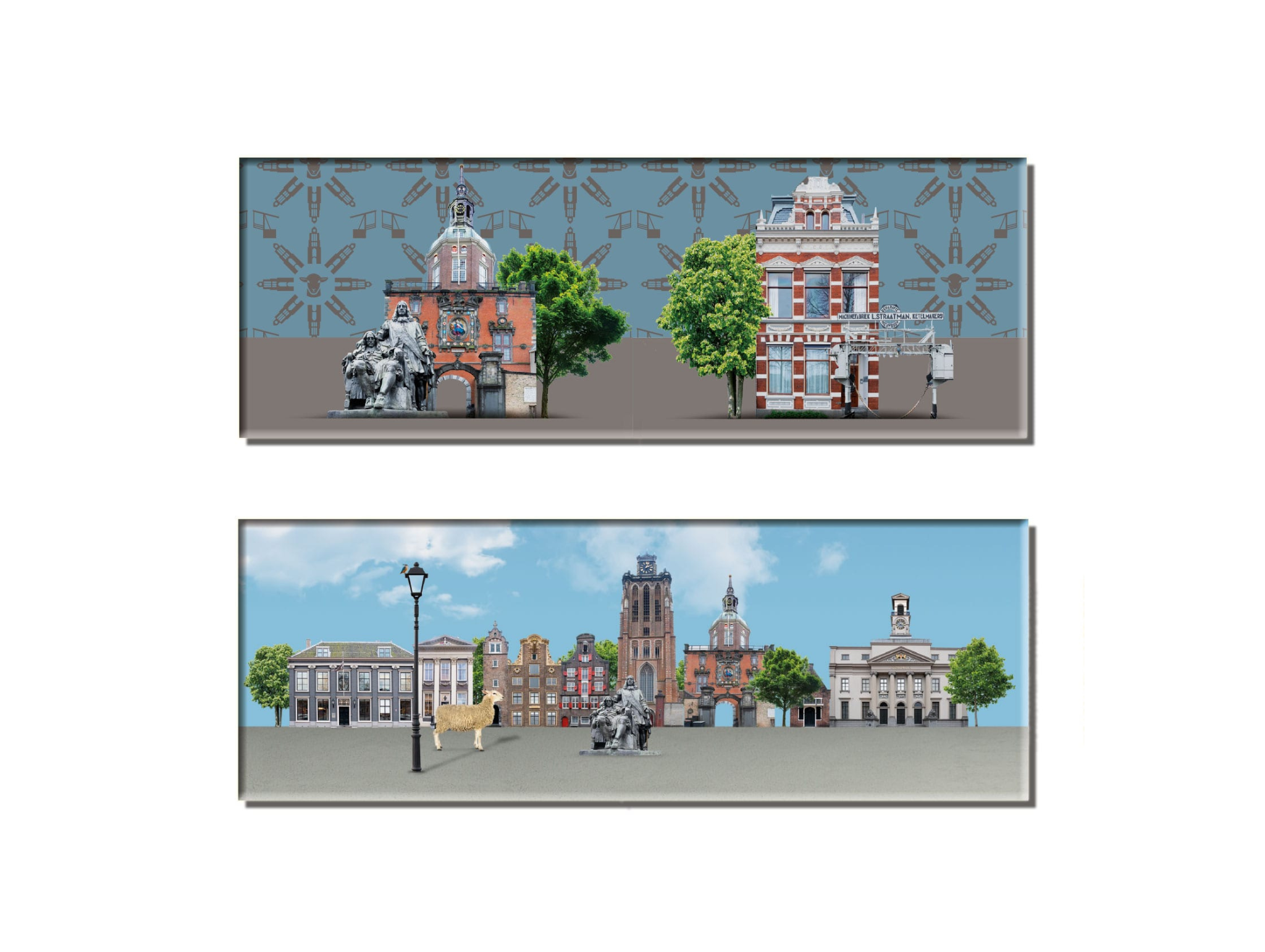 Magneet Dordrecht – monumenten: een magneet met bekende Dordtse monumenten erop. Een mooie toevoeging op de koelkast voor elke Dordt-liefhebber!