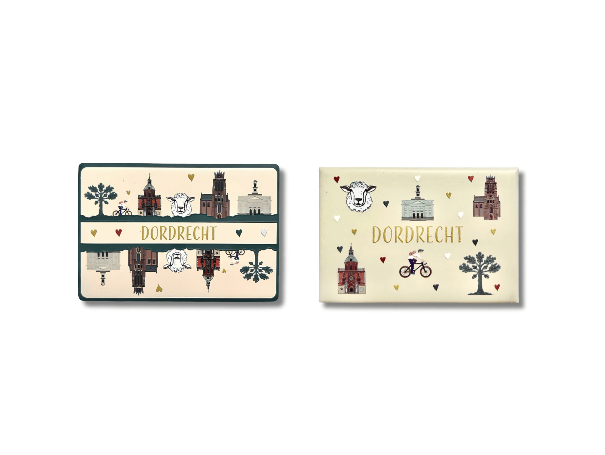 Magneet Dordrecht – schaap: twee leuke magneetjes met Dordtse monumenten en de welbekende schapenkop erop! Leuk voor op de koelkast!