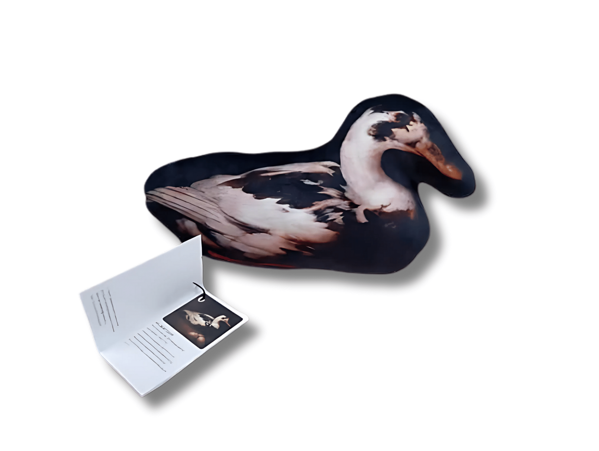 Sierkussen knuffel eend: dit kussen komt uit de collectie van het Dordrechts Museum. De knuffel is een eend uit het schilderij Portret van de 20-jarige Eend Sijctghen van Aelbert Cuyp geschilderd in circa 1647-1650. De kussen is exclusief ontworpen voor het Dordrechts Museum.